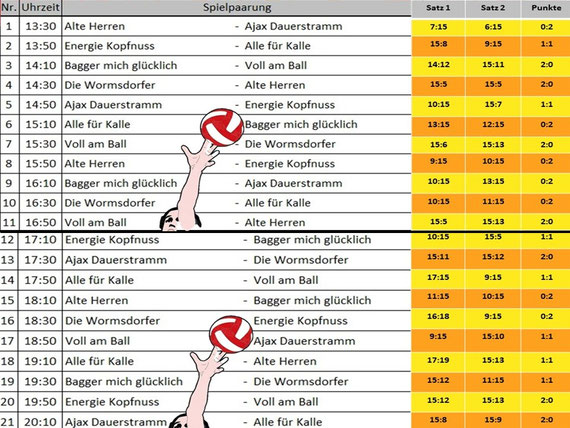 Nachfolgend die Spielergebnisse in der Übersicht: